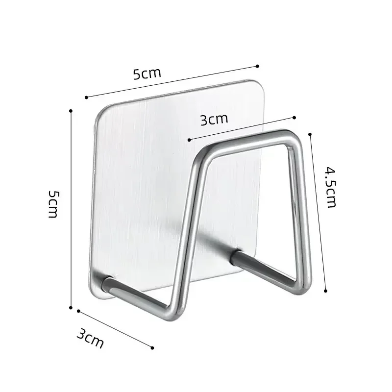 This stainless steel sink sponge holder is a practical addition to your kitchen. It features a self-adhesive design that allows for easy installation on any wall surface, providing a convenient place to store your sponges and keep your sink area organized.