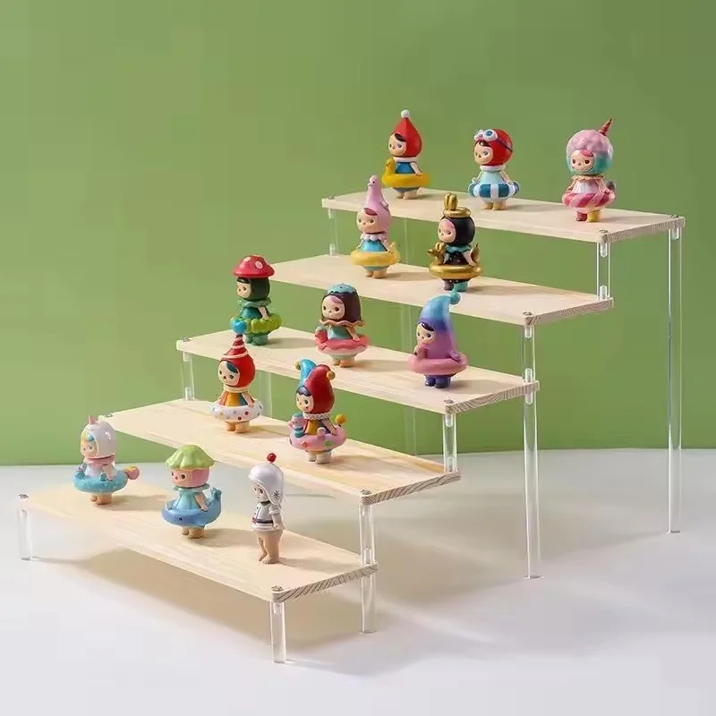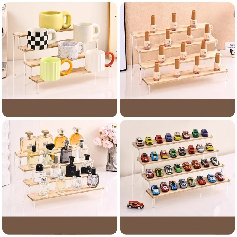 5 Tier Acrylic and Solid Wood Panel Display Stand for Perfume Cosmetic Toy Storage