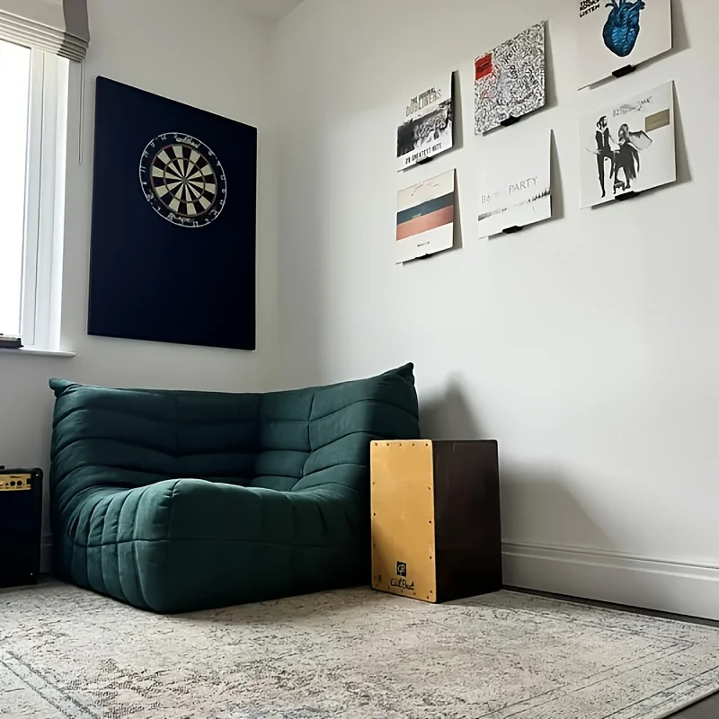 This minimalist vinyl record shelf is designed to elegantly display your favorite albums while keeping your space organized. Perfect for any living room, this wall-mounted storage solution combines functionality with a sleek aesthetic.