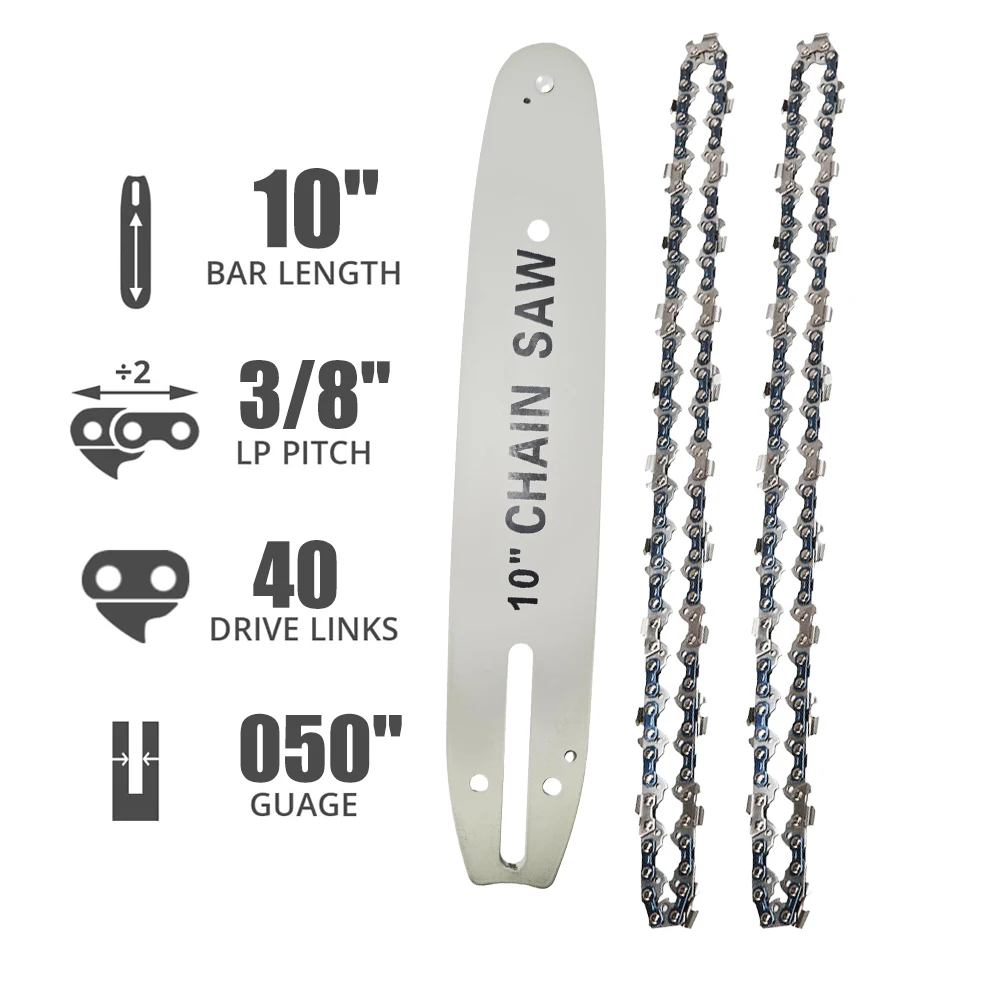 - Set A: 2 x 10 inch Chains, 1 x 10 inch Chainsaw Bar