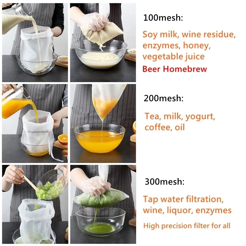 100 200 300 Mesh Filter Squeeze Water Bag Nut Milk Net Yogurt Tea Beer Coffee Food Filter Strainers