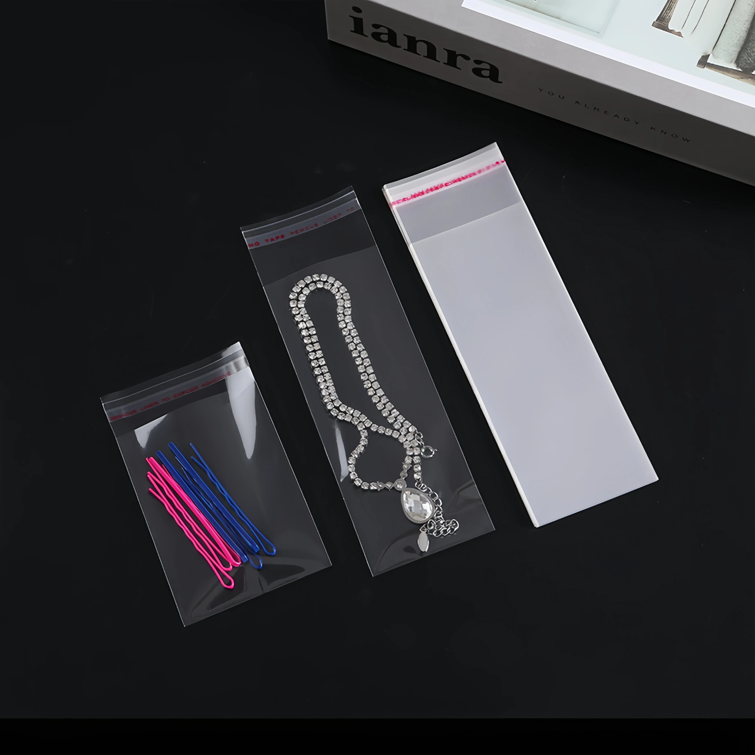 This is a set of transparent self-adhesive OPP plastic bags, ideal for packaging jewelry, gifts, and various small items. They are designed to be dust and water-proof, ensuring your items are well protected.