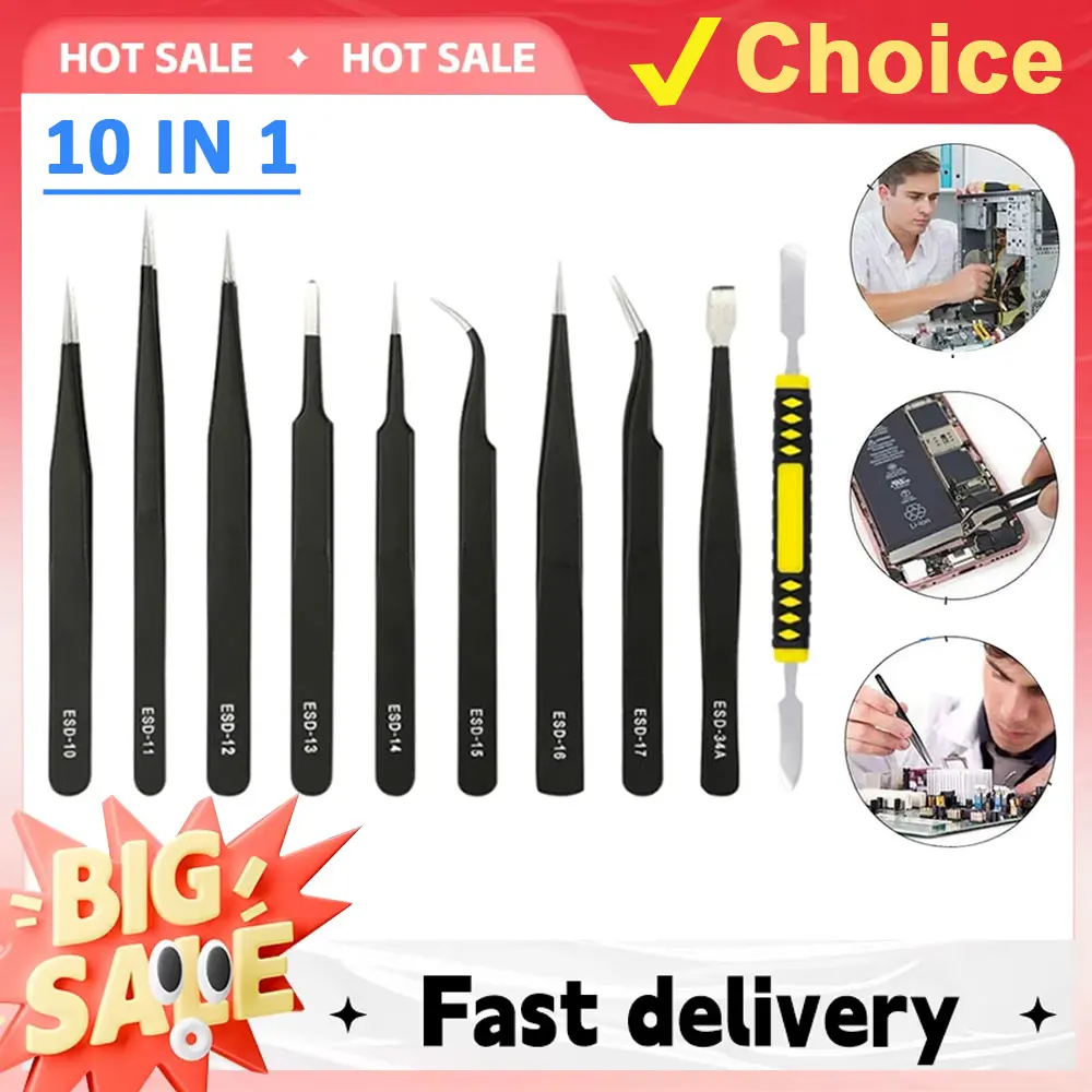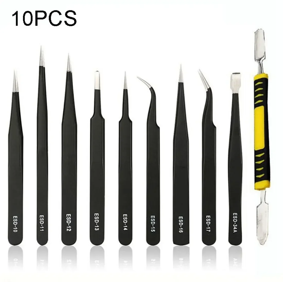 • Set of 10: Includes a variety of tweezers to meet different electronic maintenance needs.