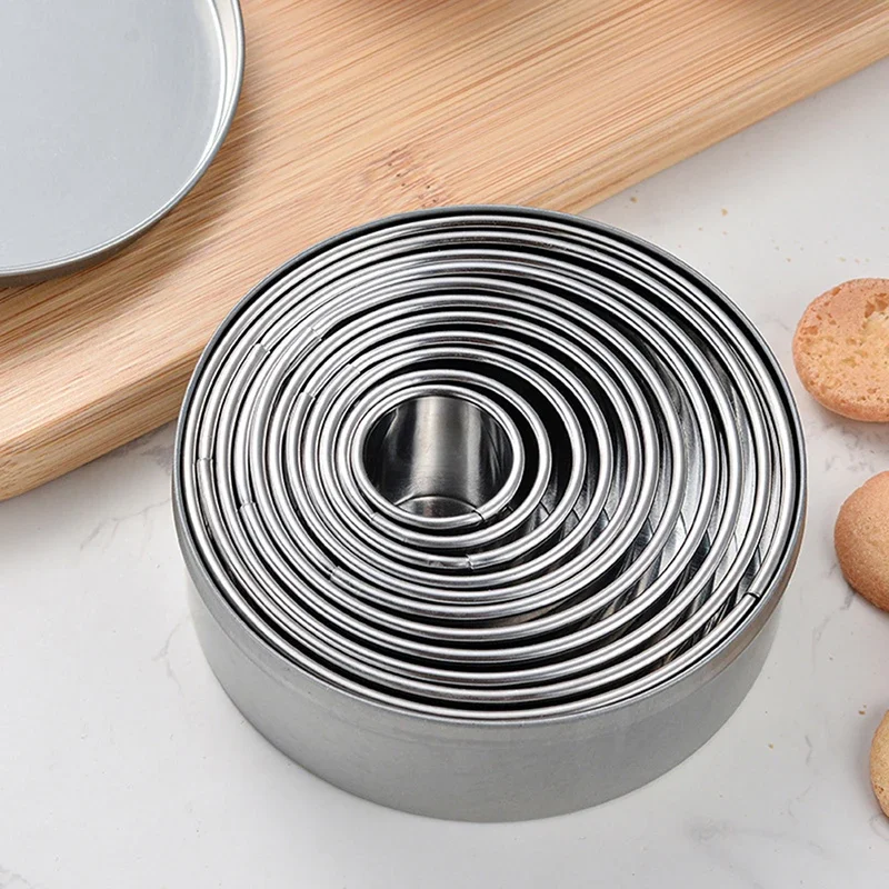 These stainless steel round cookie biscuit cutters are perfect for your baking needs. Designed for making various pastries, they come in multiple sizes to suit your creative baking projects. Enjoy the process of DIY baking with these easy-to-use molds.