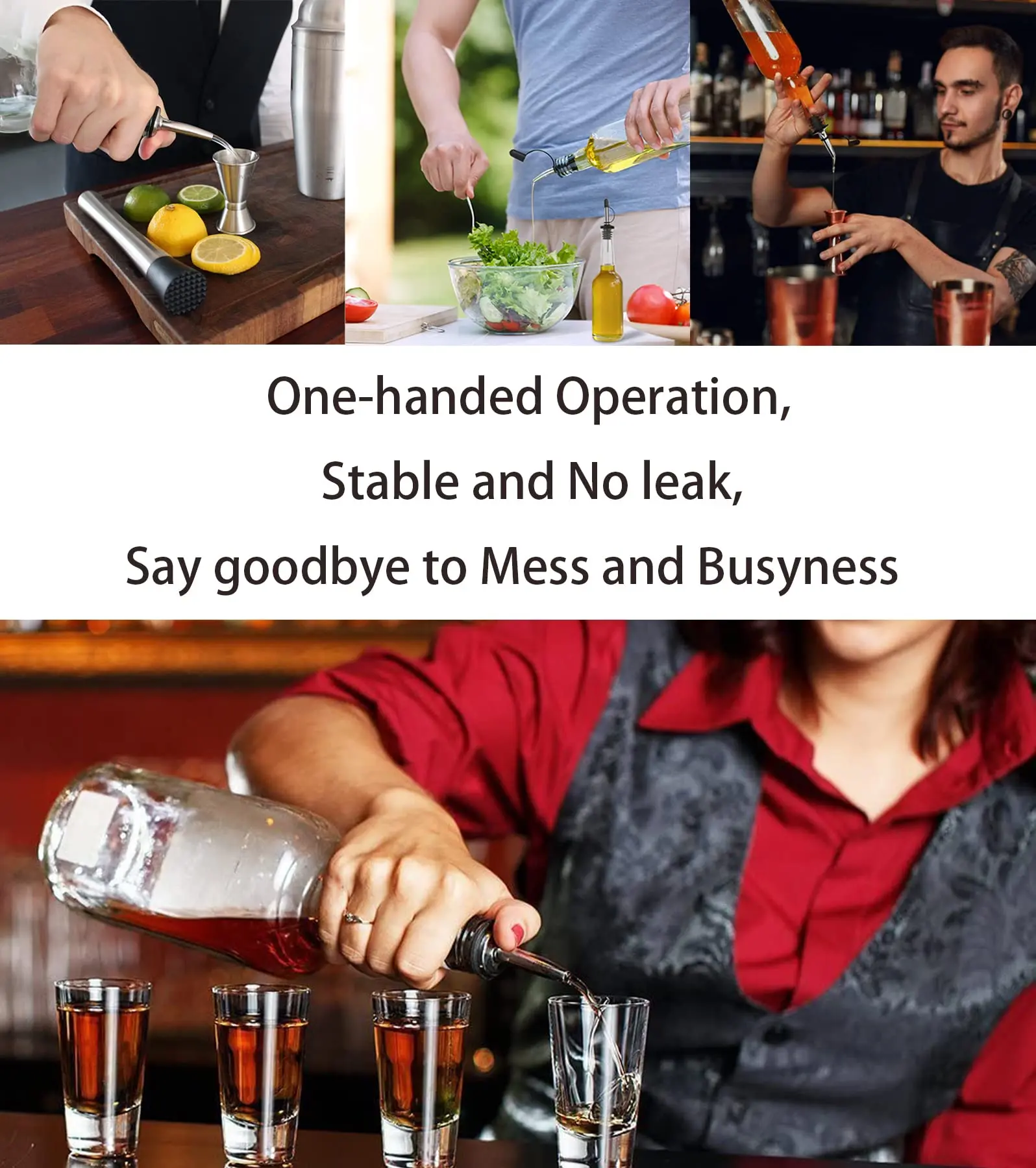 Introducing our high-quality stainless steel liquor bottle pourers, designed for precision and ease of use. These pour spouts are perfect for bartenders and home cooks alike, ensuring a smooth and controlled pour every time. Made from durable materials, they are ideal for a variety of liquids including alcohol, oils, and dressings.
