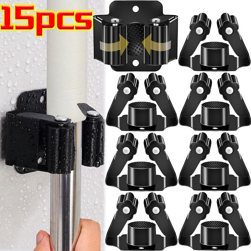 Wall Mounted Broom Holder Sturdy Metal Space Saver Modern Cleaning Tools
