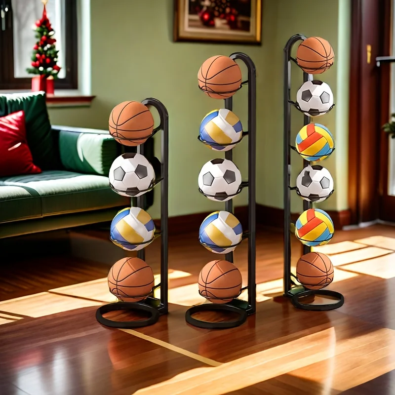 The 1PC Black Metal Sports Ball Organizer is a versatile storage solution designed to keep your sports balls neatly organized. This multi-functional storage rack is perfect for any sports enthusiast and makes an excellent holiday gift.