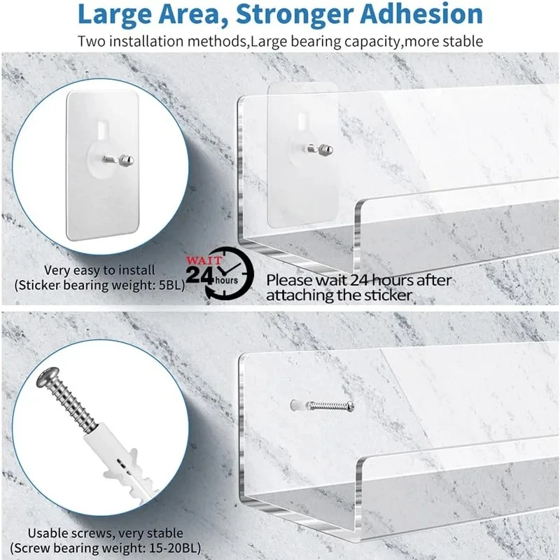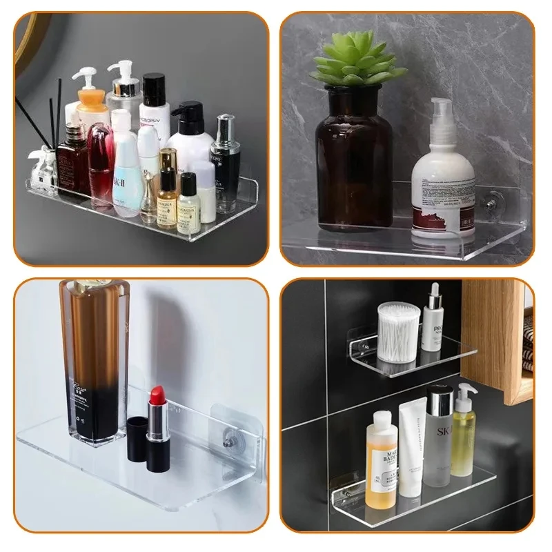 This clear acrylic storage rack is designed for wall mounting, making it an ideal solution for organizing and displaying various items such as books, makeup, and collectibles. Its transparent design allows for a clean and modern look, perfect for any room in your home or office.