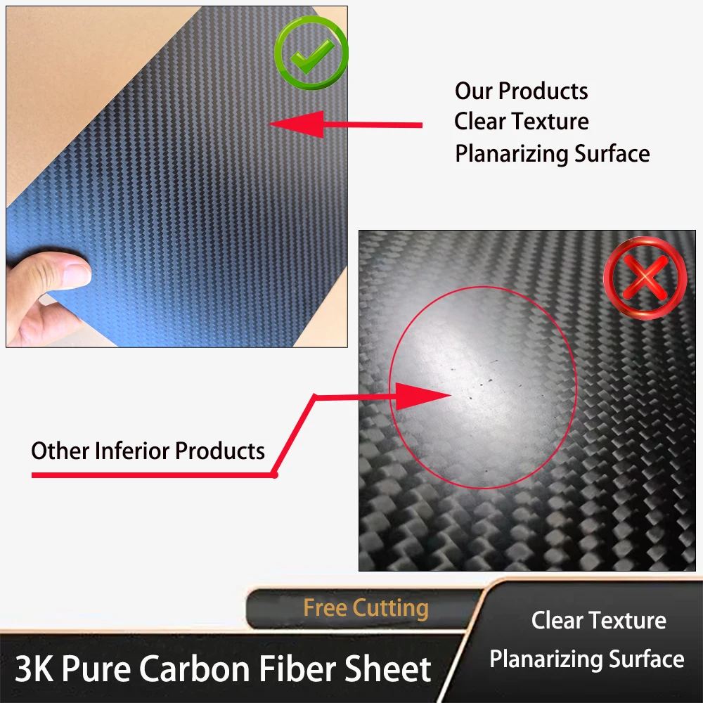 100X250mm 100% Pure Carbon Fiber Sheets 0.5mm-5mm Thickness 3K Carbon Plate
