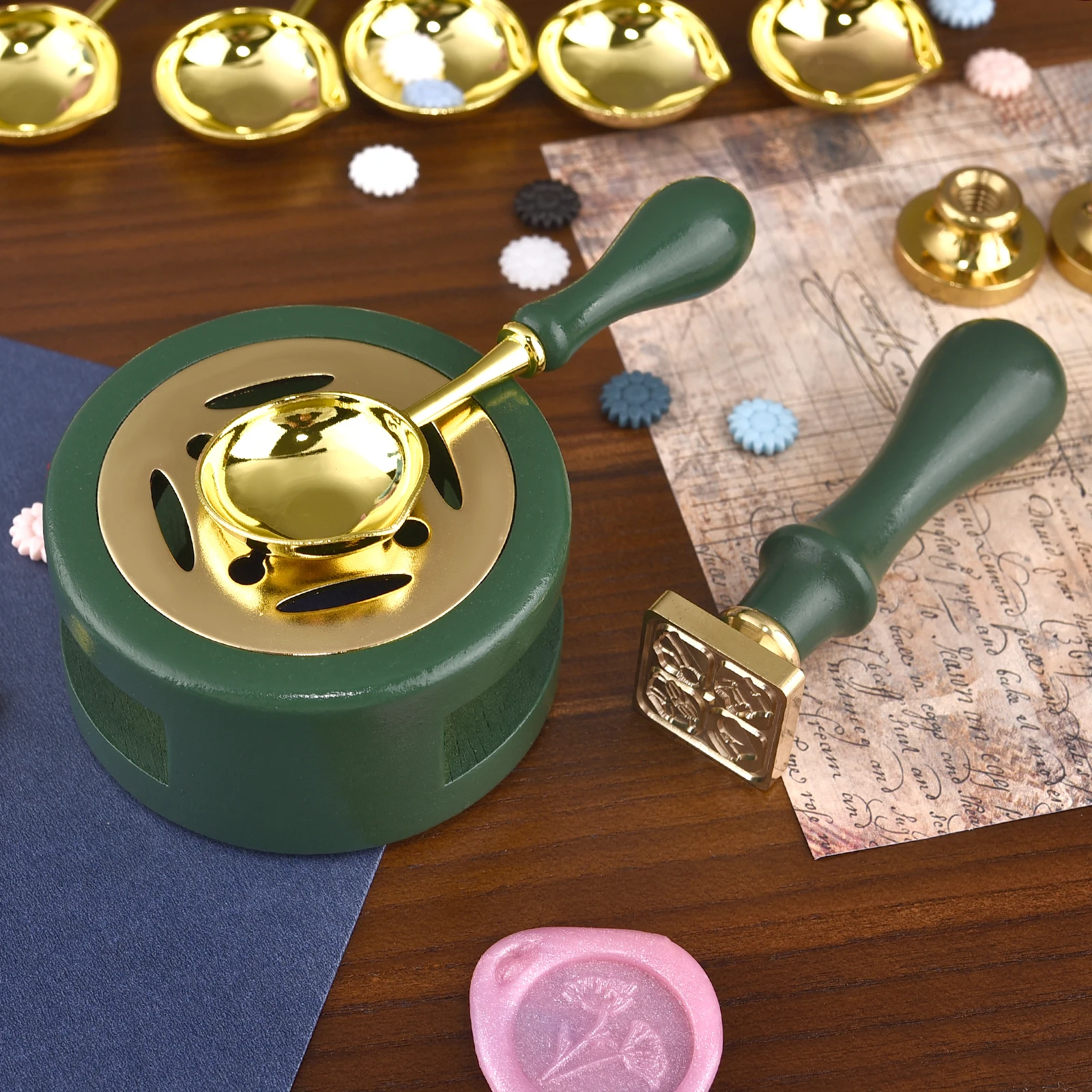 This Retro Sealing Wax Furnace Stove Pot Set is perfect for creating beautiful wax seals for your letters, invitations, or crafts. The set includes a pot with a wooden handle and a sealing wax spoon, making it easy to melt and pour wax for your sealing needs.