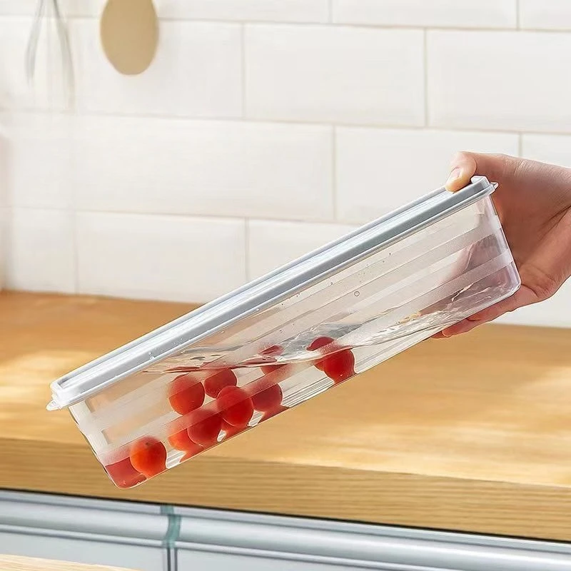 This food storage container is designed to keep your fruits and other food items fresh for longer periods. With a modern and elegant design, it is perfect for any kitchen. The container is made from durable plastic and features a secure lid to prevent air from entering, ensuring your food stays fresh and flavorful.