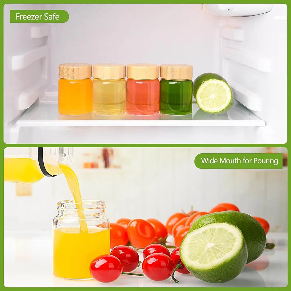 These 2oz glass shot bottles are designed for convenience and versatility. Made from high borosilicate glass, they are perfect for storing homemade wellness shots, juices, and more. The compact size makes them easy to carry, while the airtight lids ensure your beverages stay fresh.