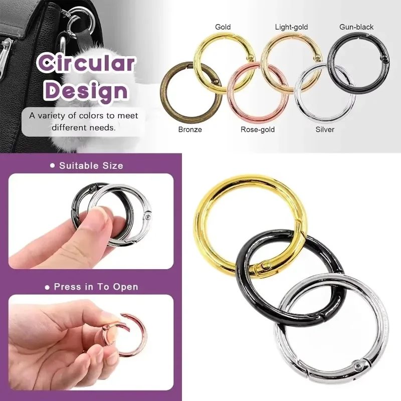 These Metal O Ring Spring Clasps are perfect for various DIY jewelry projects, keychains, and bag accessories. Available in multiple sizes, they are designed for easy use and versatility in crafting. Choose from different quantities to suit your needs.