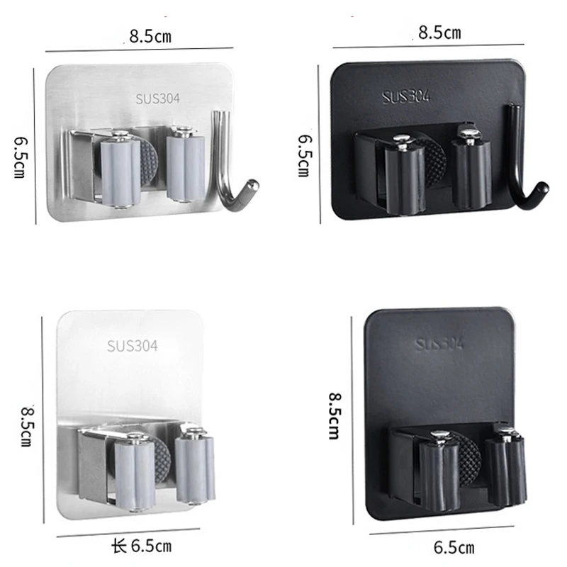 304 Stainless Steel Mop Holder Hook Wall Mounted Mop Organizer Rack