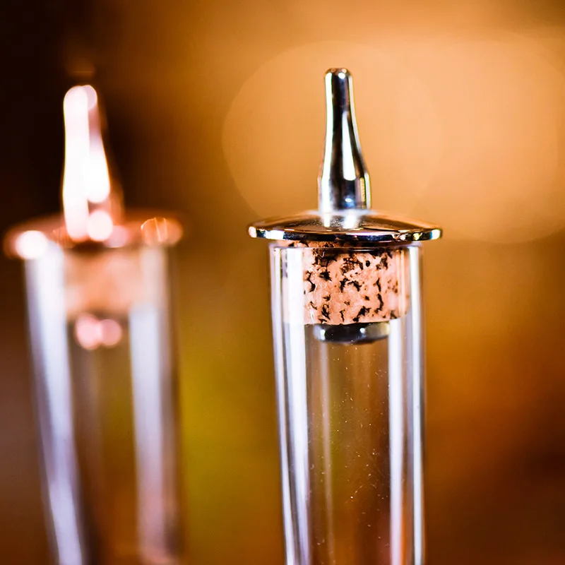 Introducing the 4 Pieces Liquor Dasher Tops Dash-Bottle Pourer, designed to enhance your bartending experience. These pourers fit most bitters bottles with an opening of up to approximately 20mm, ensuring a precise dash whether the bottle is full or nearly empty. The cork base guarantees a snug fit, while the durable stainless steel core provides reliable performance.