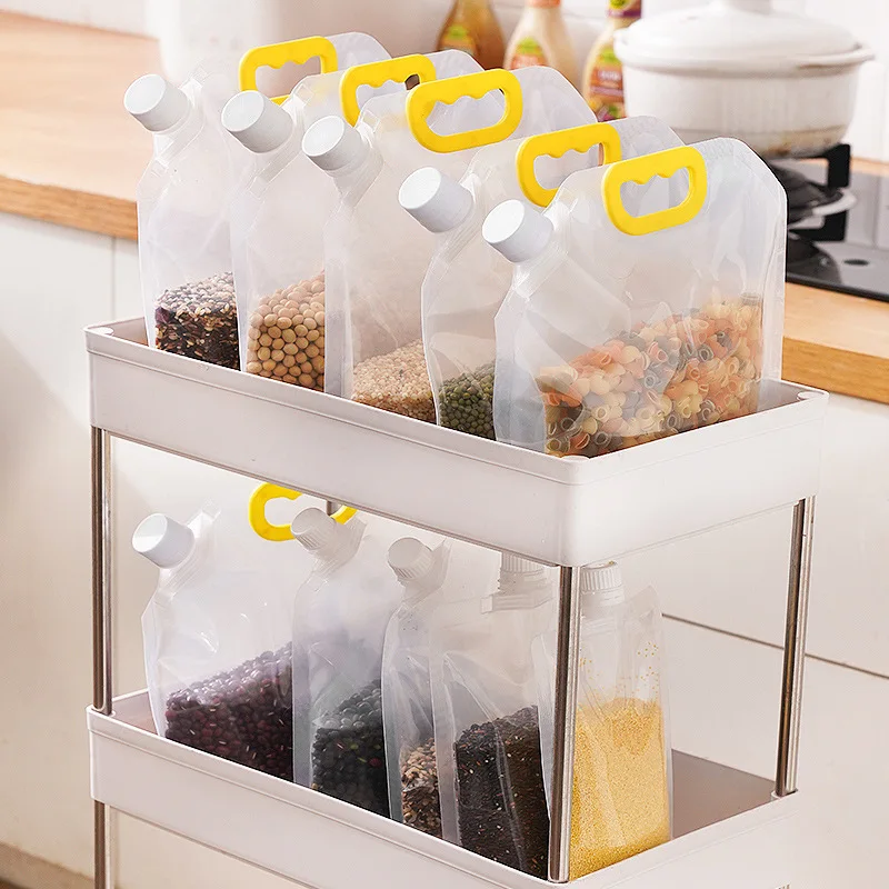 4Pcs Sealed Bags Set Grain Sugar Storage Pouch Kitchen Airtight Containers