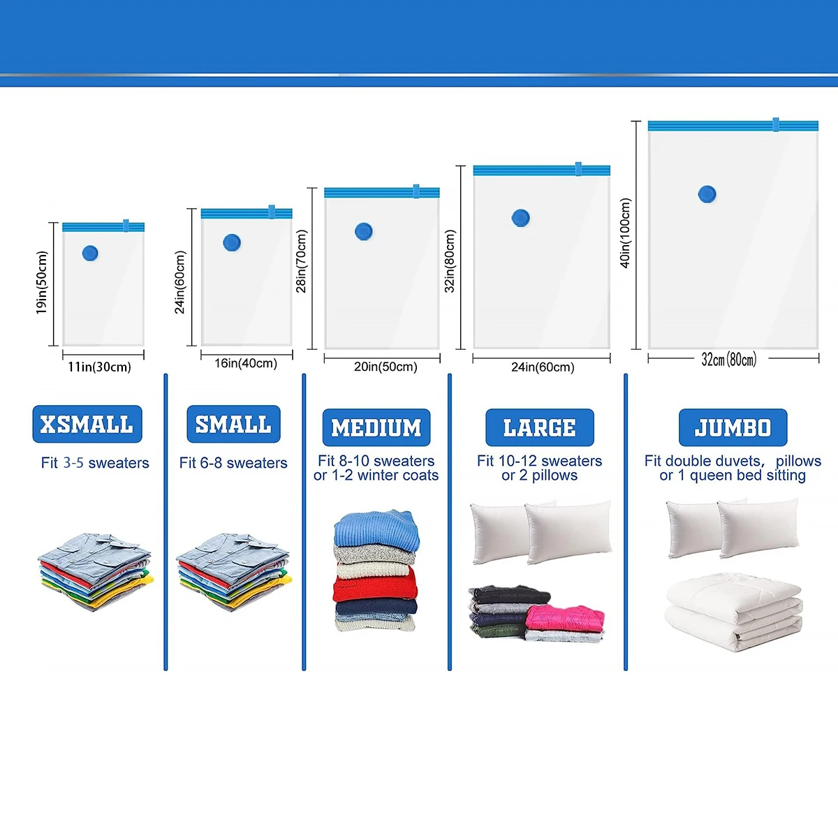 These vacuum storage bags are perfect for organizing and storing a variety of items such as clothing, bedding, and more. With multiple sizes available, you can easily compress and store your out-of-season items in closets, drawers, or under the bed, making your space more efficient.