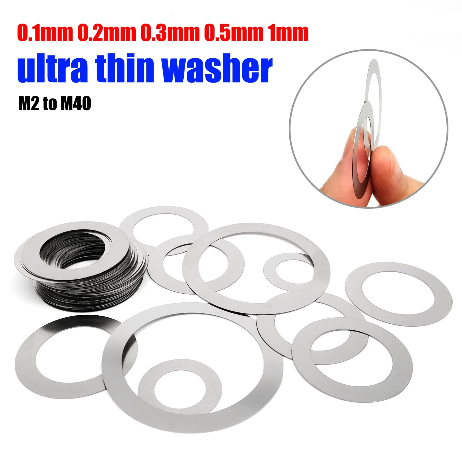 High Quality 0.1 to 1mm Thick M2 M3 M4 M5 M6 M8 to M40 Ultrathin Adjust Shim Flat Washer 304 Stainless Steel