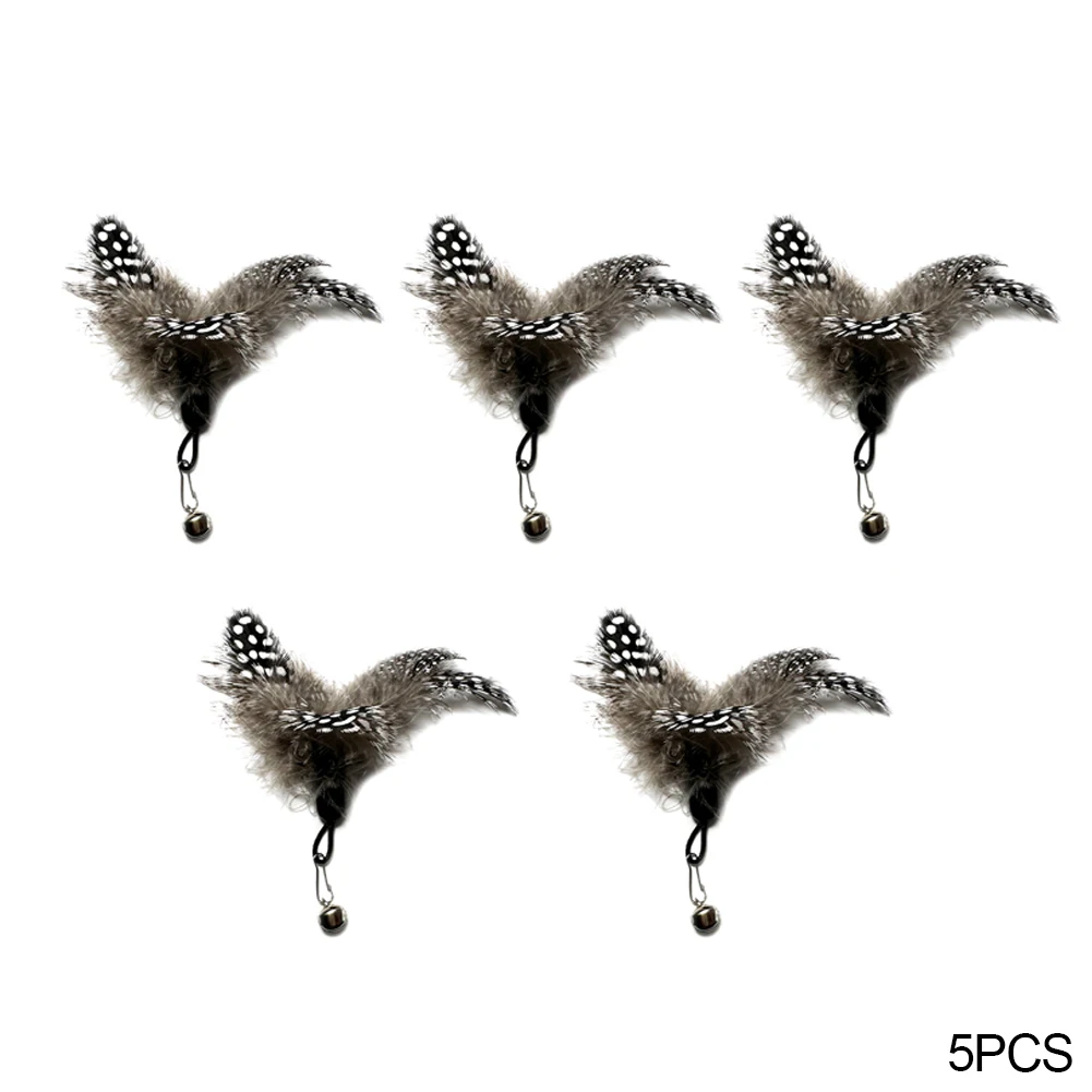Cat Toy Feather Pendant with Bell 5Pcs Interactive Replacement Teaser Stick