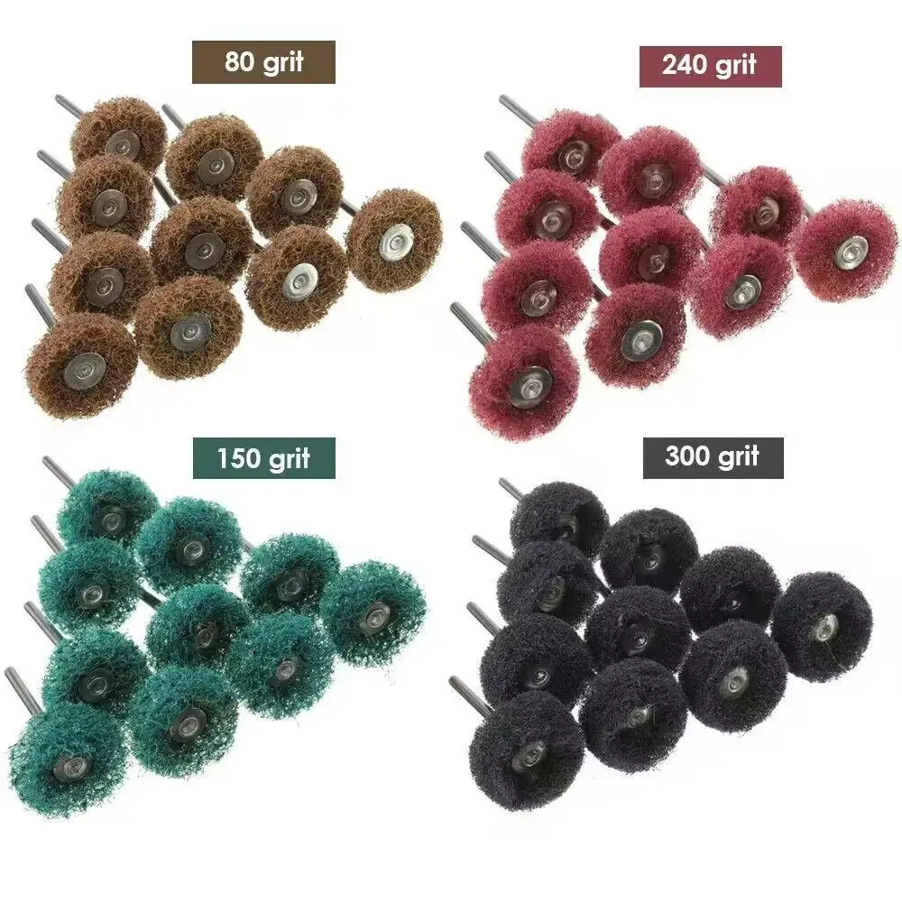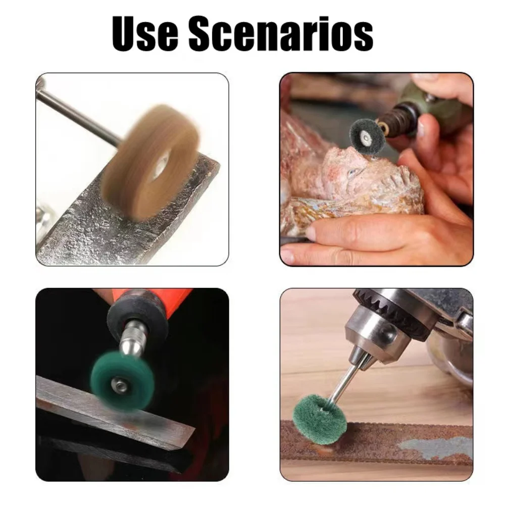 This set of mini drill abrasive brushes is designed for polishing and buffing various materials. Ideal for removing rust, dust, and burrs, these brushes are perfect for use in jewelry making, electronics, and other precision tasks.