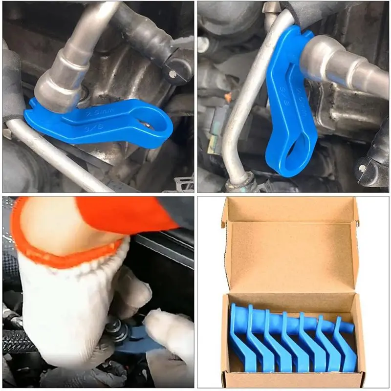 The 7Pcs AC Fuel Line Disconnect Tool Set is designed for quick and efficient removal of fuel lines and transmission oil cooler lines. This set is essential for automotive maintenance and repair, allowing you to easily disconnect fuel lines without damaging them.
