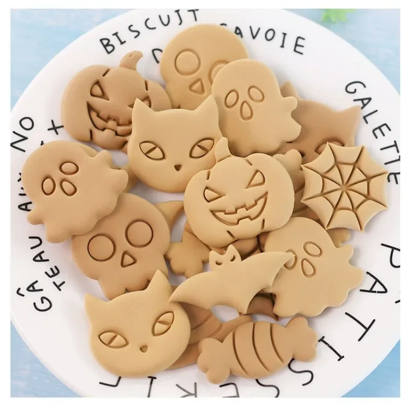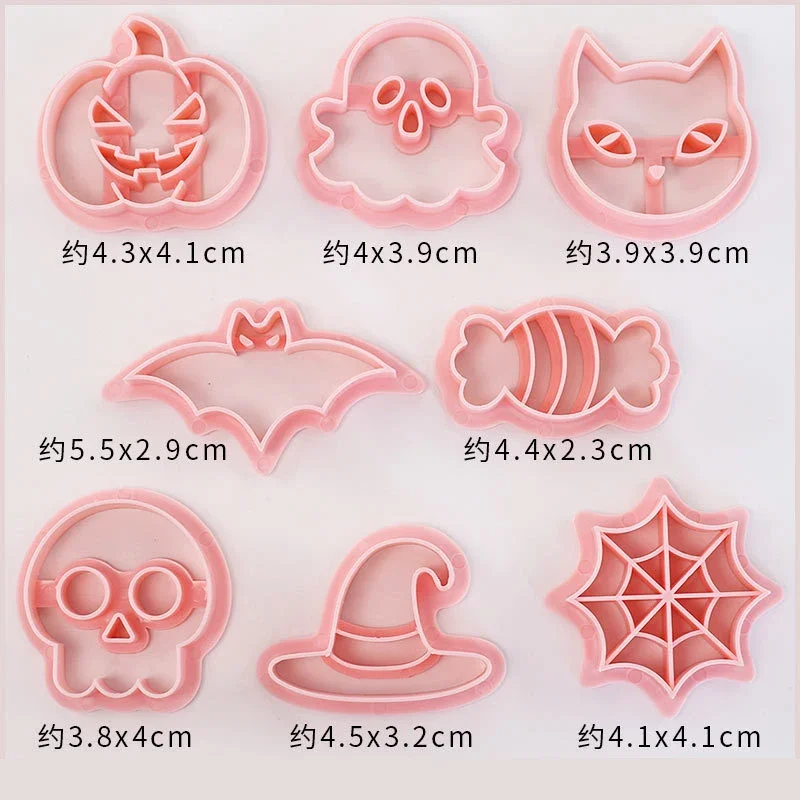 This 8PCS Set Cartoon Biscuit Mould is perfect for creating fun and festive cookies for Halloween and Christmas. With various shapes including bats, pumpkins, ghosts, and skulls, these cookie cutters will add a delightful touch to your baking.