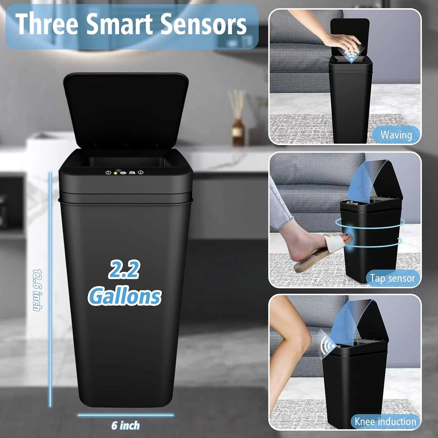 - Motion Sensor Technology: The lid opens automatically within 0.1 seconds of detecting movement and closes after 5 seconds of inactivity.