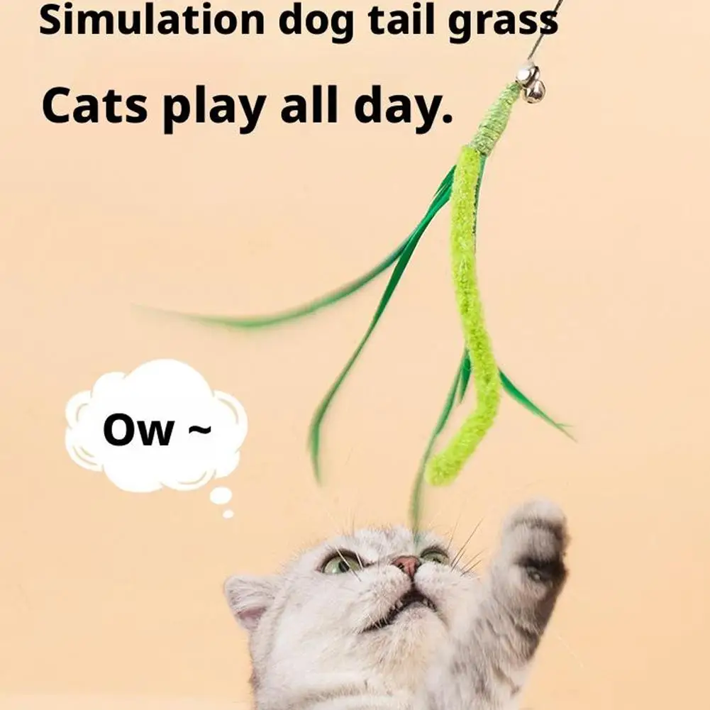 Cat Teasing Toy Interactive Tail Grass Feather Long Pole Pet Supplies