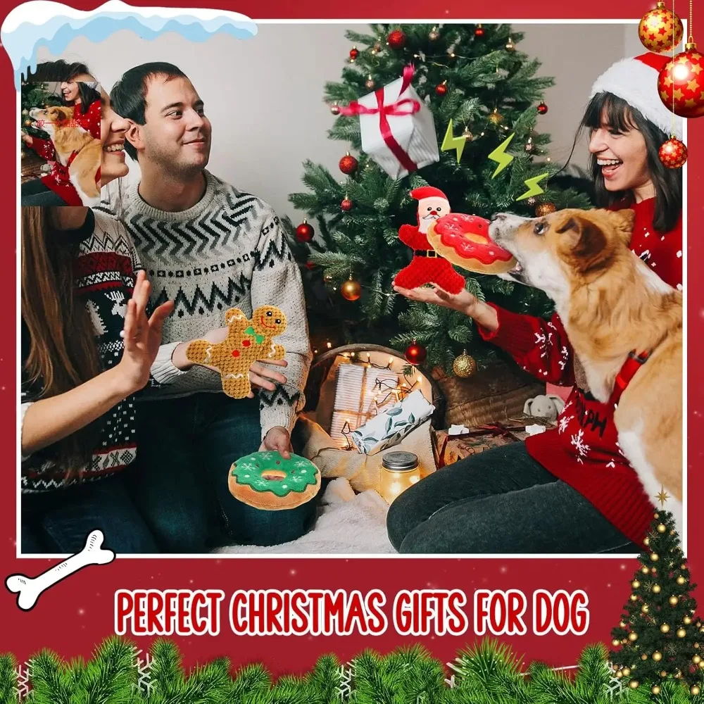 Christmas Dog Plush Squeaky Toys Donut Chew Toys for Medium Small Puppy