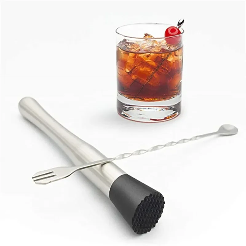 Cocktail Muddler and Mixing Spoon Stainless Steel Cocktail Muddler Tool Set