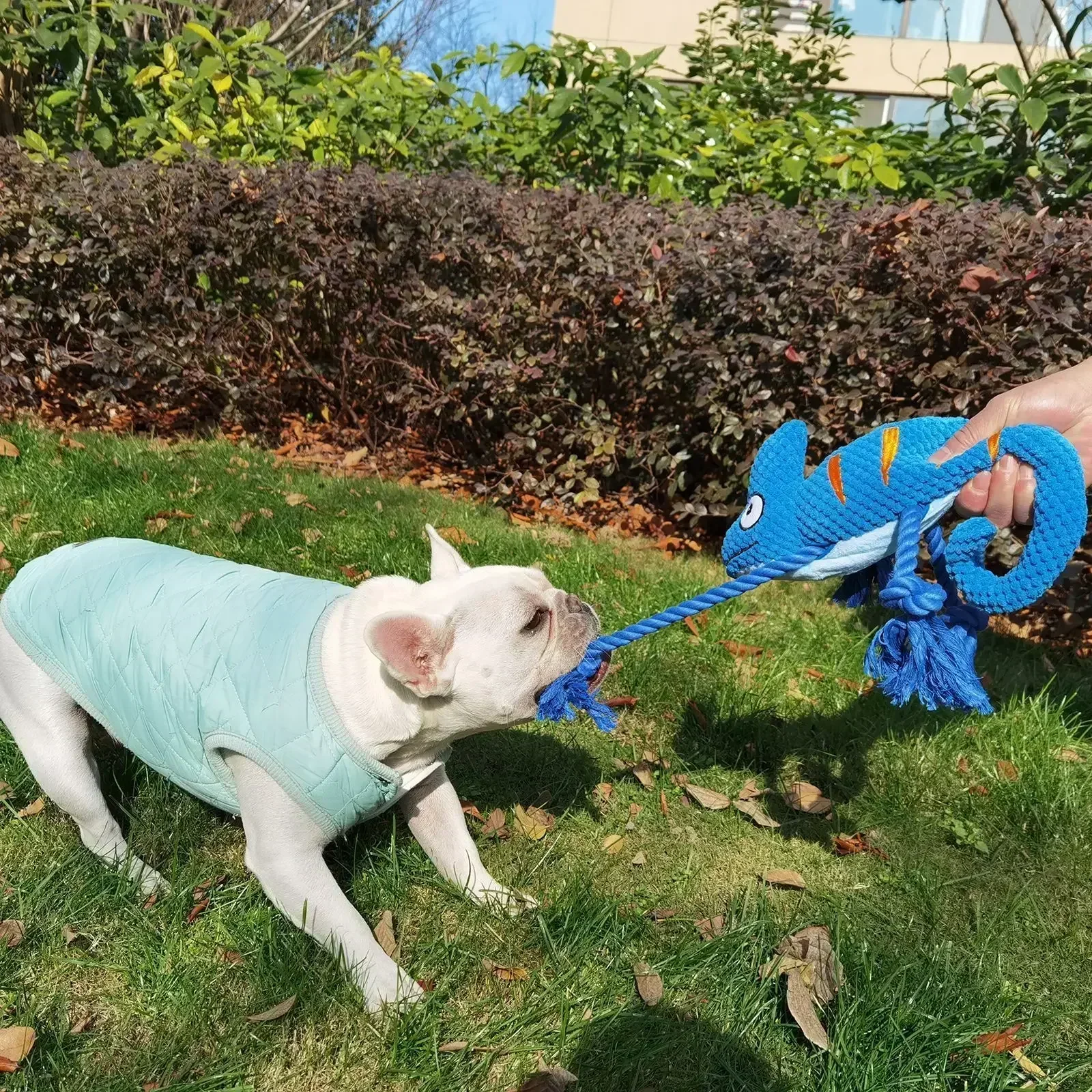 This plush dog toy is designed for both small and large dogs, providing a fun and engaging way for your pet to play and chew. The chameleon design adds a unique touch, making it an attractive addition to your dog’s toy collection.