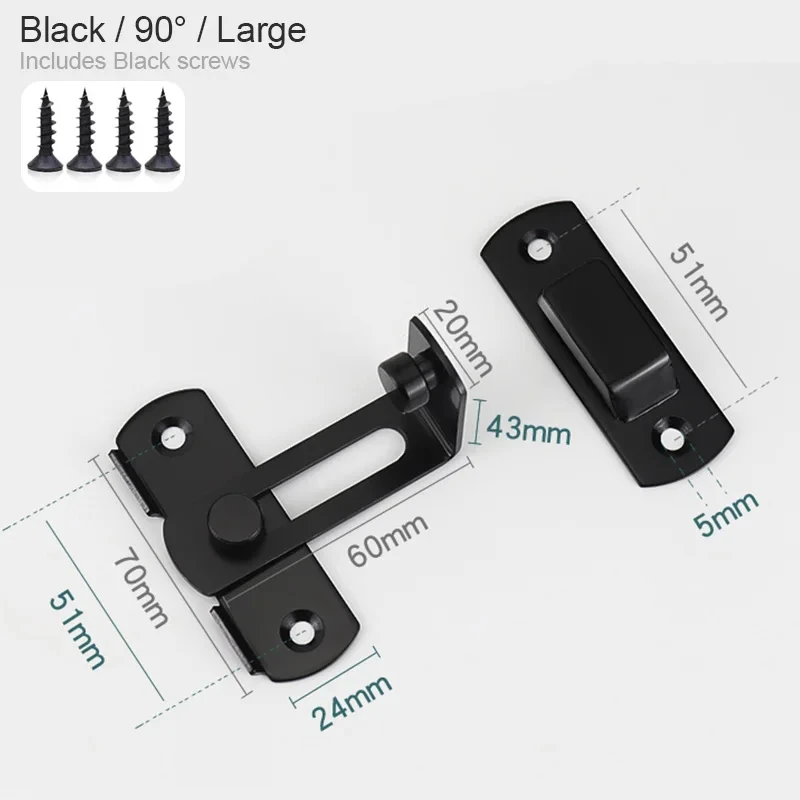 Door Lock Guard Latch Bolt 90 180 Degree Stainless Steel Toggle Latch Black Iron