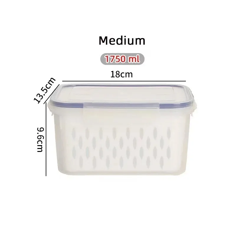This Double Layer Sealed Preservation Box is designed for efficient food storage, keeping your fruits and vegetables fresh for longer. Its innovative design features a drainage system that prevents water accumulation, ensuring your food stays clean and hygienic.