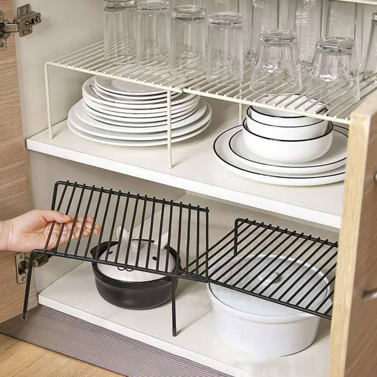 This expandable kitchen storage rack is designed to help you organize your kitchen essentials efficiently. It allows you to stack various items such as seasonings, cups, and bowls while keeping other utensils neatly stored underneath. Perfect for maximizing limited space, this rack offers flexibility in arranging your kitchenware.