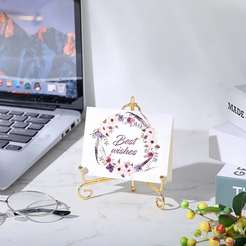 Golden Iron Versatile Display Stand for Craft Clock Holder Picture Frame Art