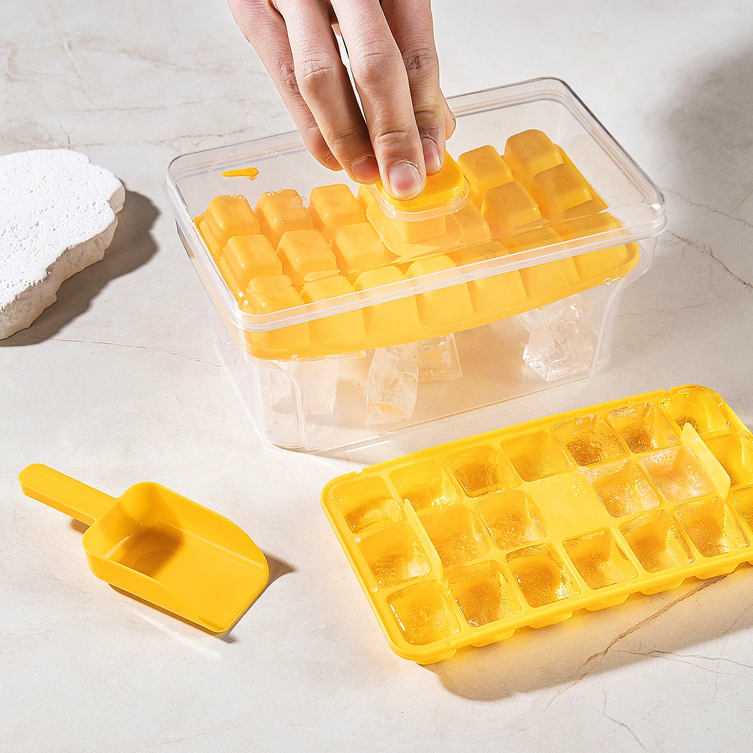 Ice Trays for Freezer with Lid and Bin Easy Press to Release Ice Cubes