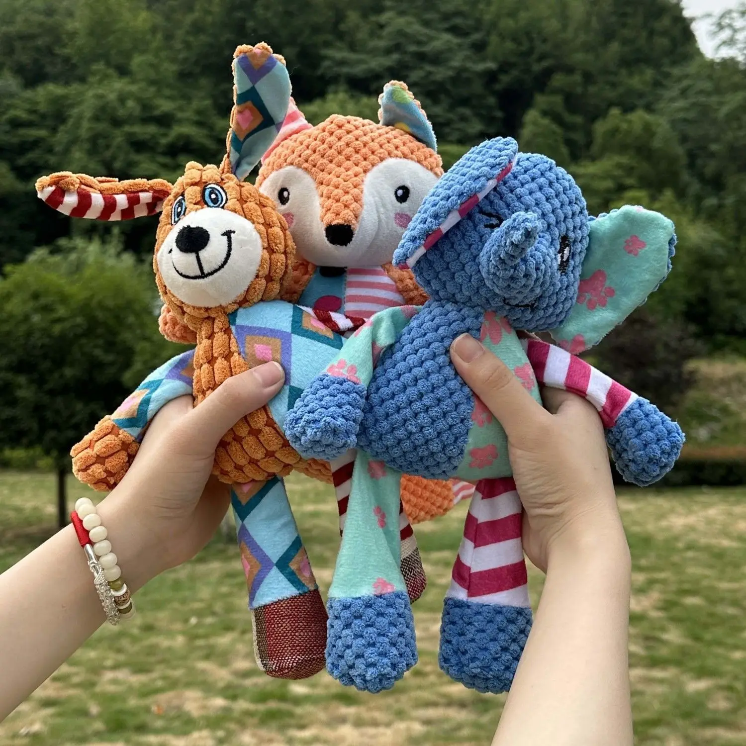 Squeaky Dog Chewing Toy Plush Toy Cute Fox Elephant Bite Resistant