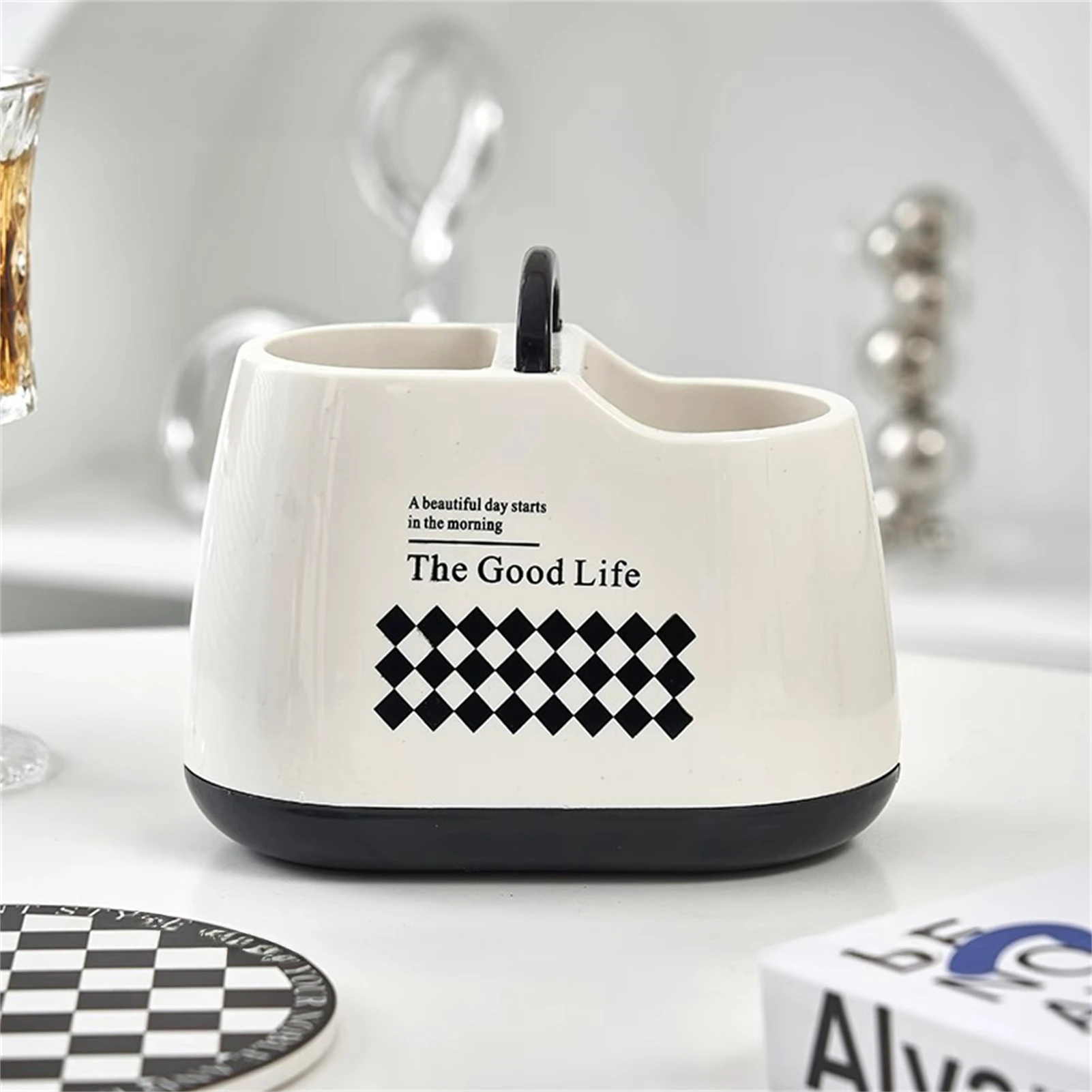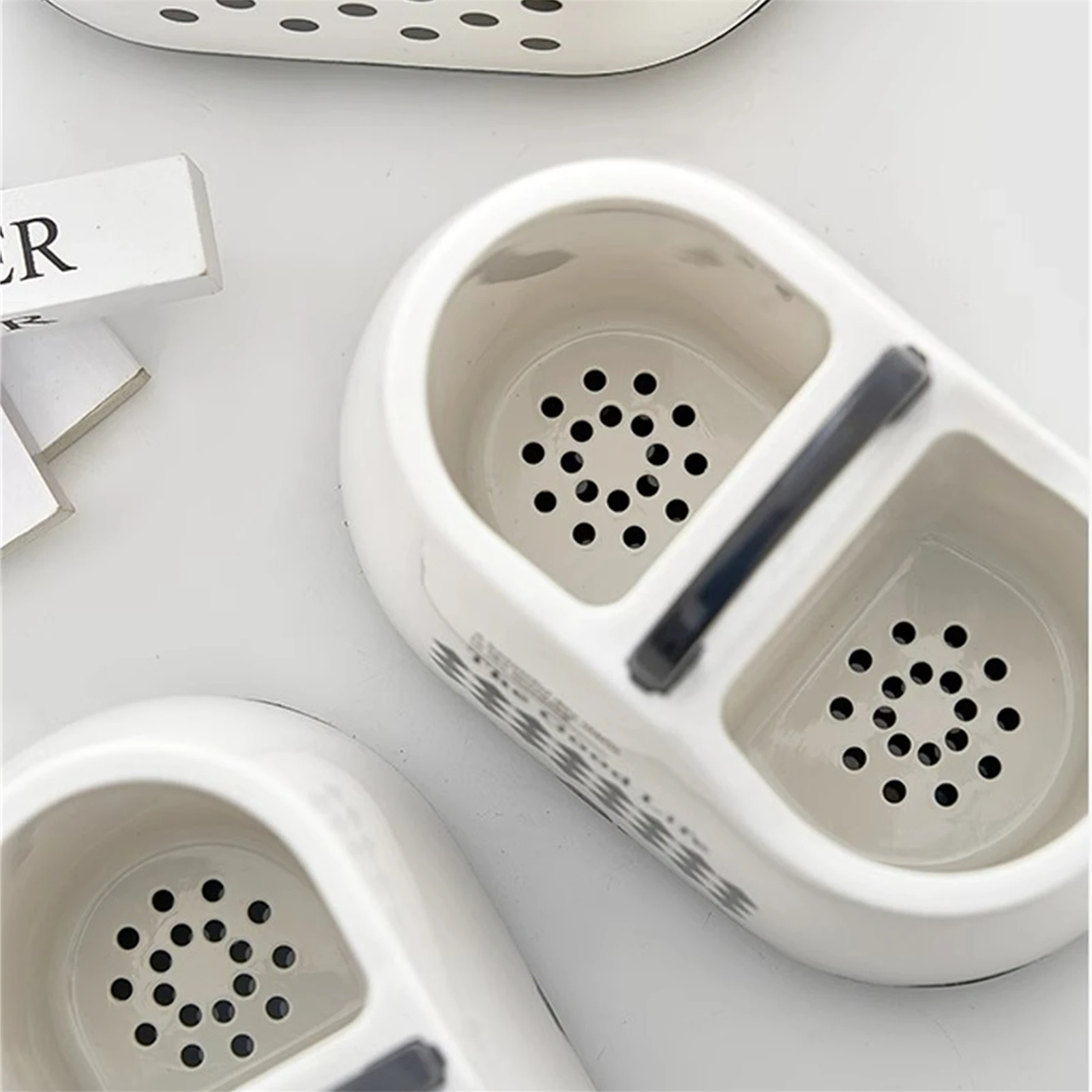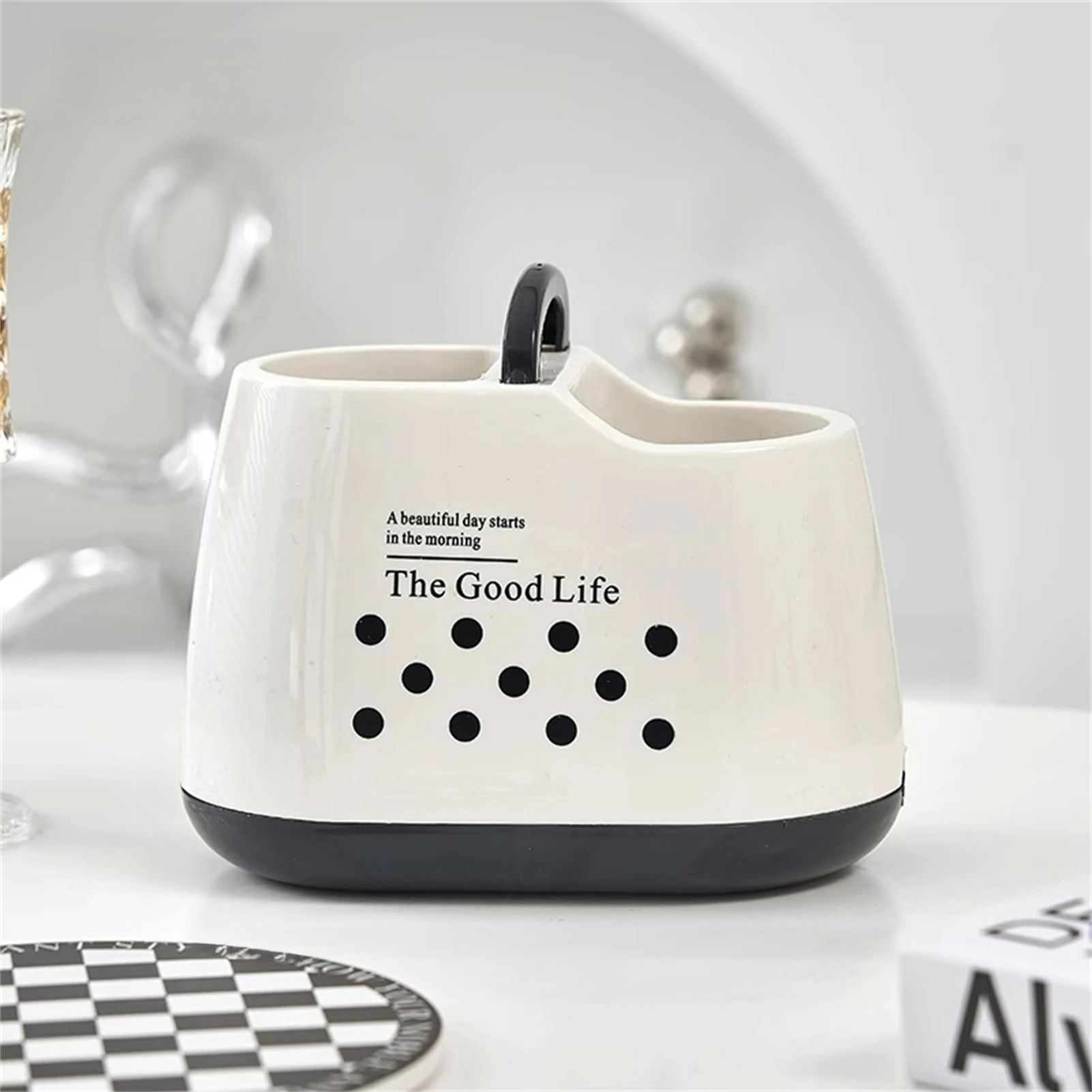 Kitchen Tableware Holder Plastic Counter Utensil Storage Container with Drainage