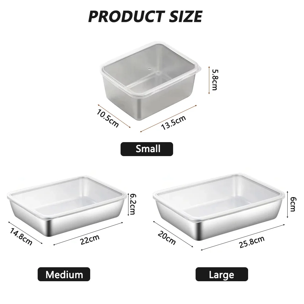 This stainless steel rectangle tray is designed for versatile use in your kitchen. With a large capacity, it is perfect for serving food, storing leftovers, or organizing your kitchen supplies. Its durable construction ensures it can withstand daily use while maintaining its quality.
