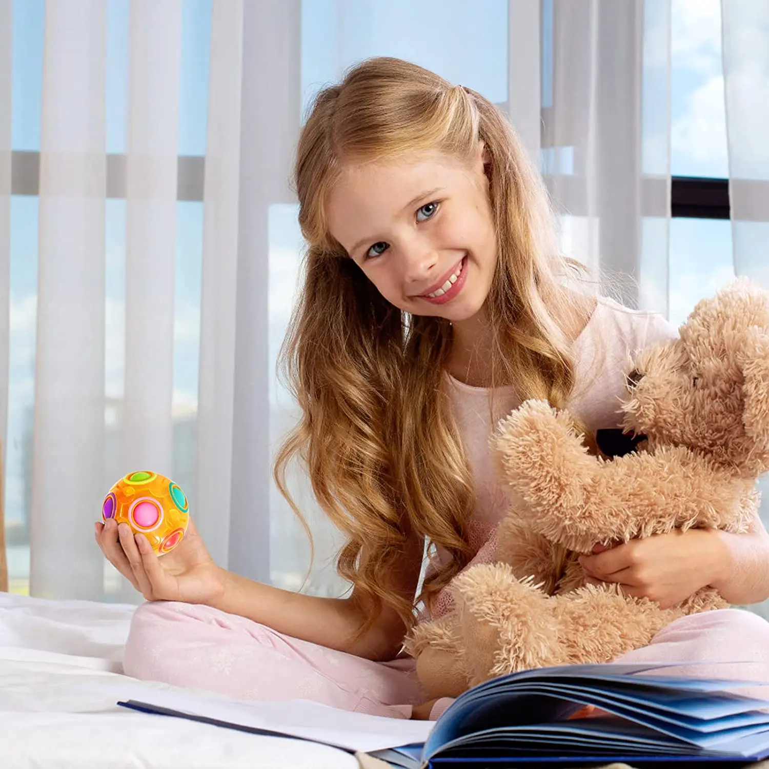 This Magic Rainbow Puzzle Ball is an engaging 3D puzzle toy designed for children, teens, and adults. It serves as a fun stress reliever and brain teaser, encouraging focus and concentration while providing an enjoyable challenge.