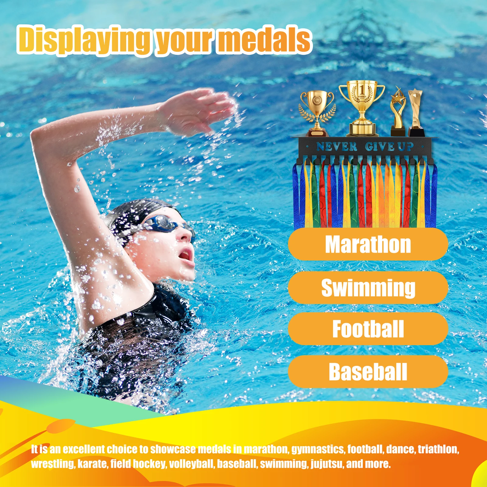 - Versatile Use: Suitable for various locations such as living rooms, bedrooms, gyms, or offices, and ideal for displaying medals from different sports.