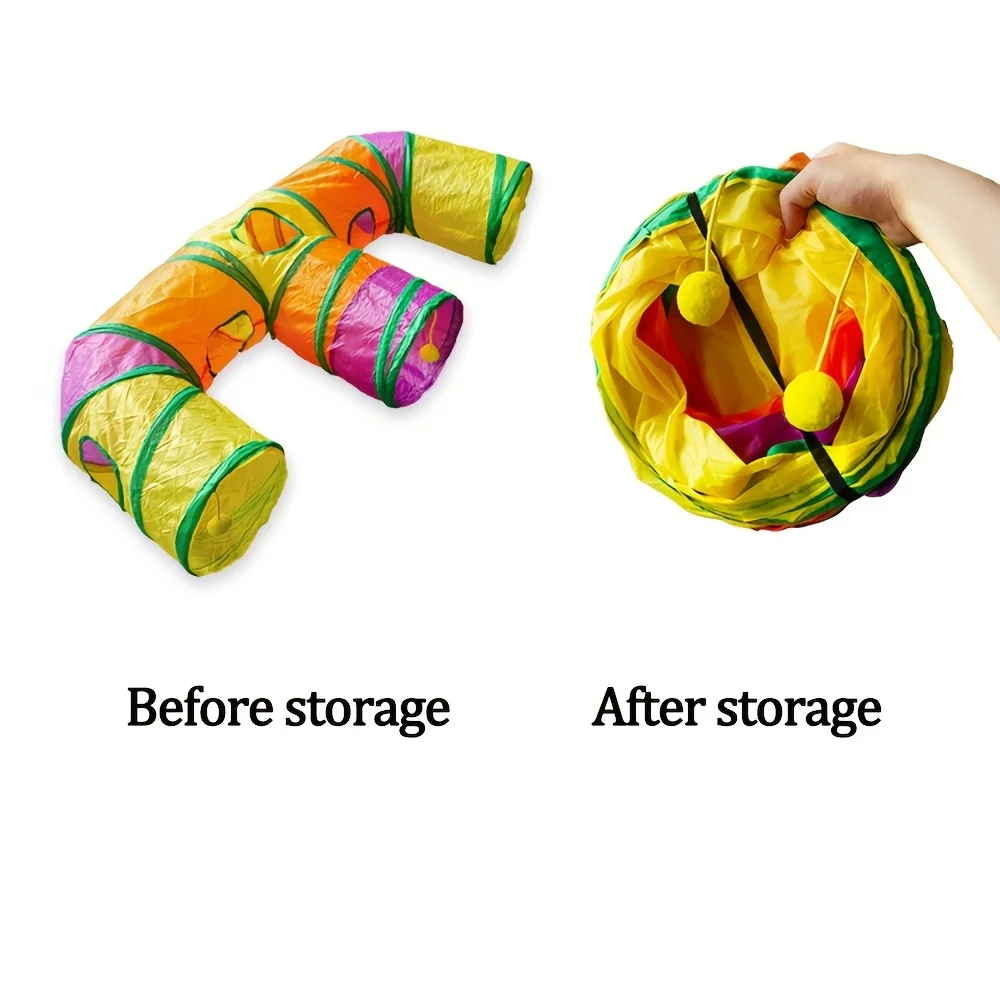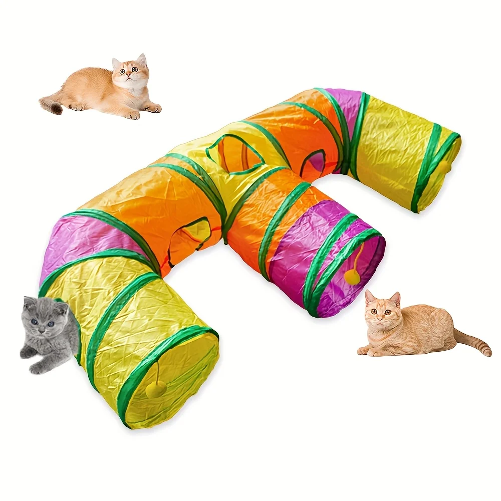 Introducing the E-Shaped Cat Tunnel with Ball Wand, a versatile and engaging toy designed for your feline friends. This all-season, washable, and foldable pet toy provides endless entertainment and a cozy space for your cat to explore and play.