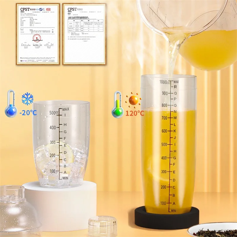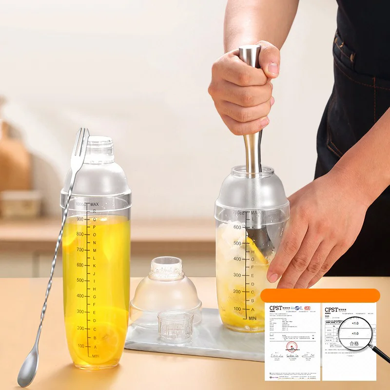 PC Resin Cocktail Shaker Martini Hand Shaker Cup with Scales 350ml 500ml 700ml 1000ml