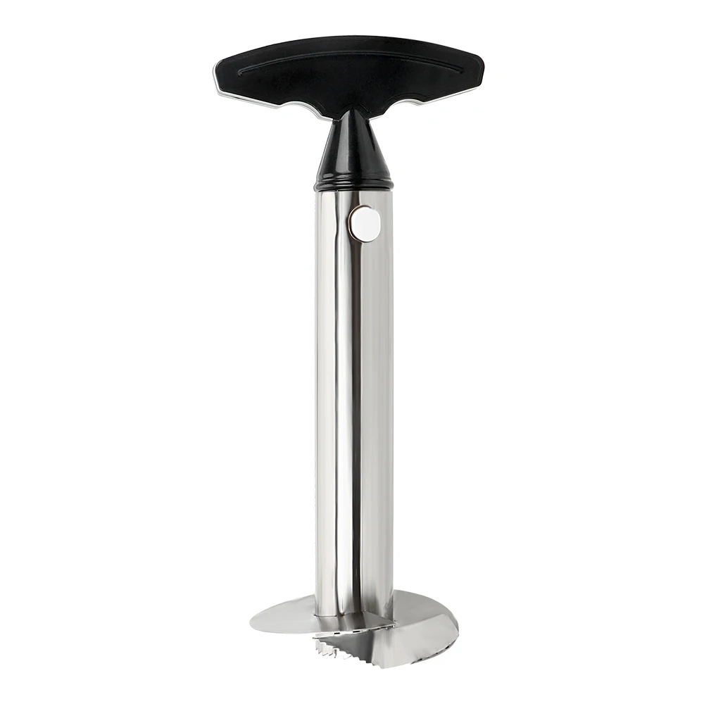 - Efficiently removes perfectly formed pineapple rings while leaving the core intact.