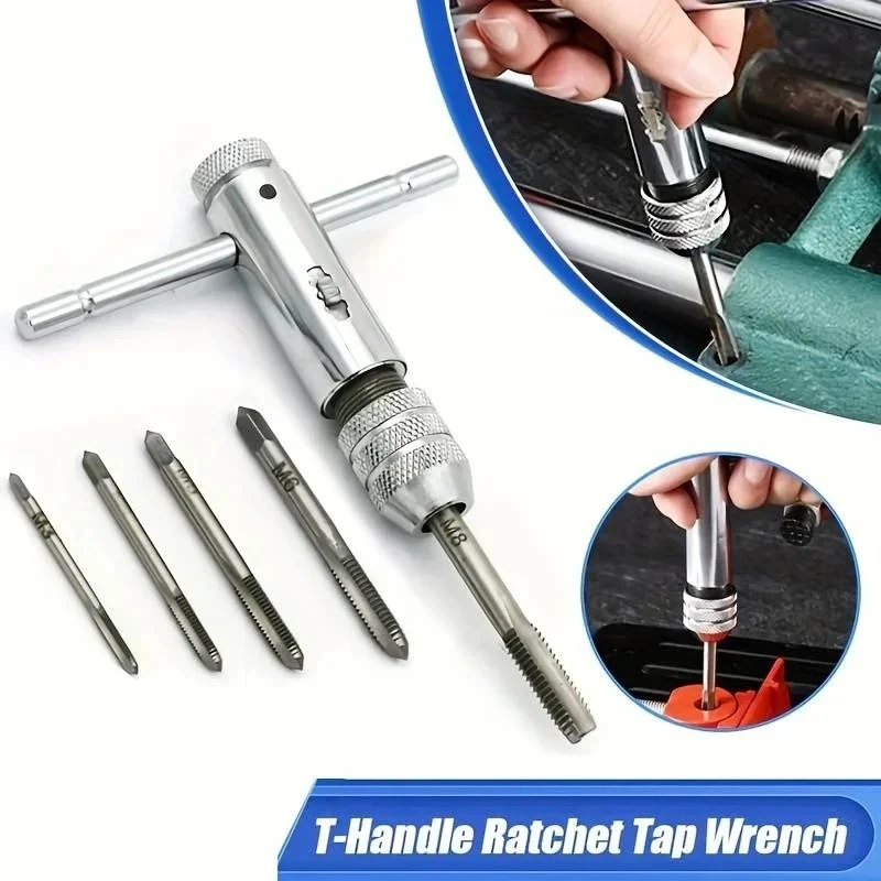 Ratchet Tap Adjustable T-Handle Holder Wrench for M3-M8 Screw Machine Tool