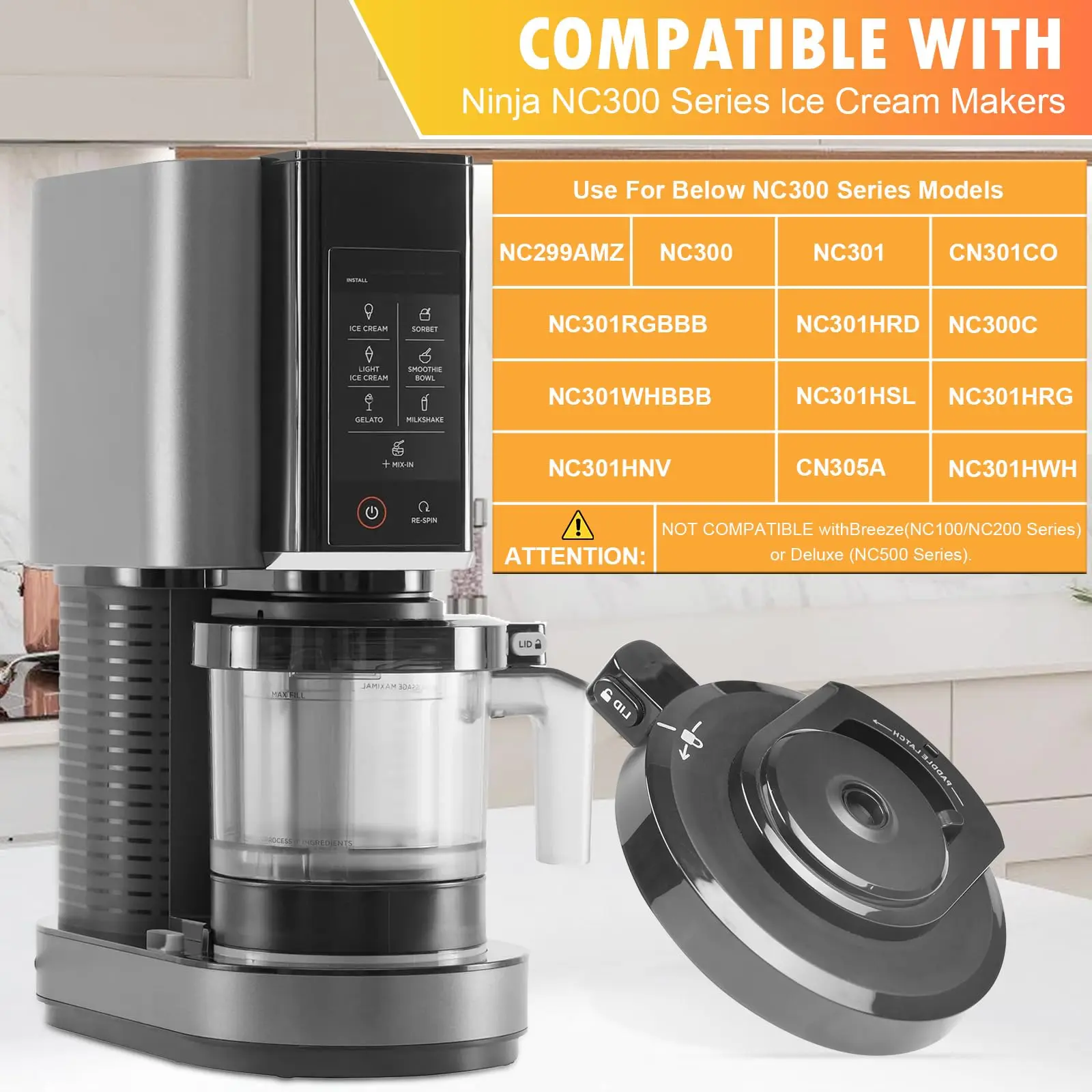 - Compatible with Ninja Ice Cream Maker models NC300, NC301, CN301CO, and NC299AMZ (not compatible with NC500/Deluxe).