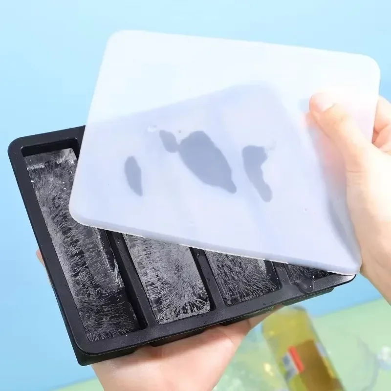 Silicone Ice Cube Mold Reusable Square Ice Cube Molds with Lid for Whiskey