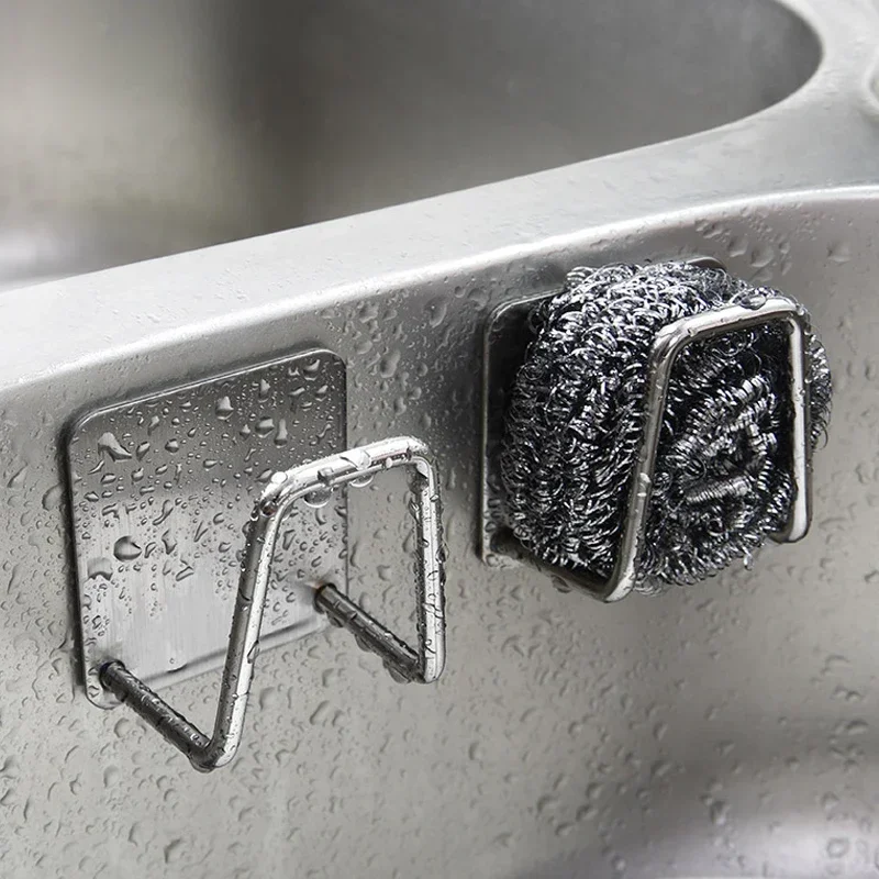 This stainless steel sink sponge holder is designed for convenient storage of kitchen sponges and dishcloths. It features a self-adhesive backing for easy wall mounting, helping to keep your kitchen organized and tidy.