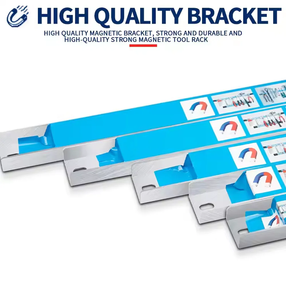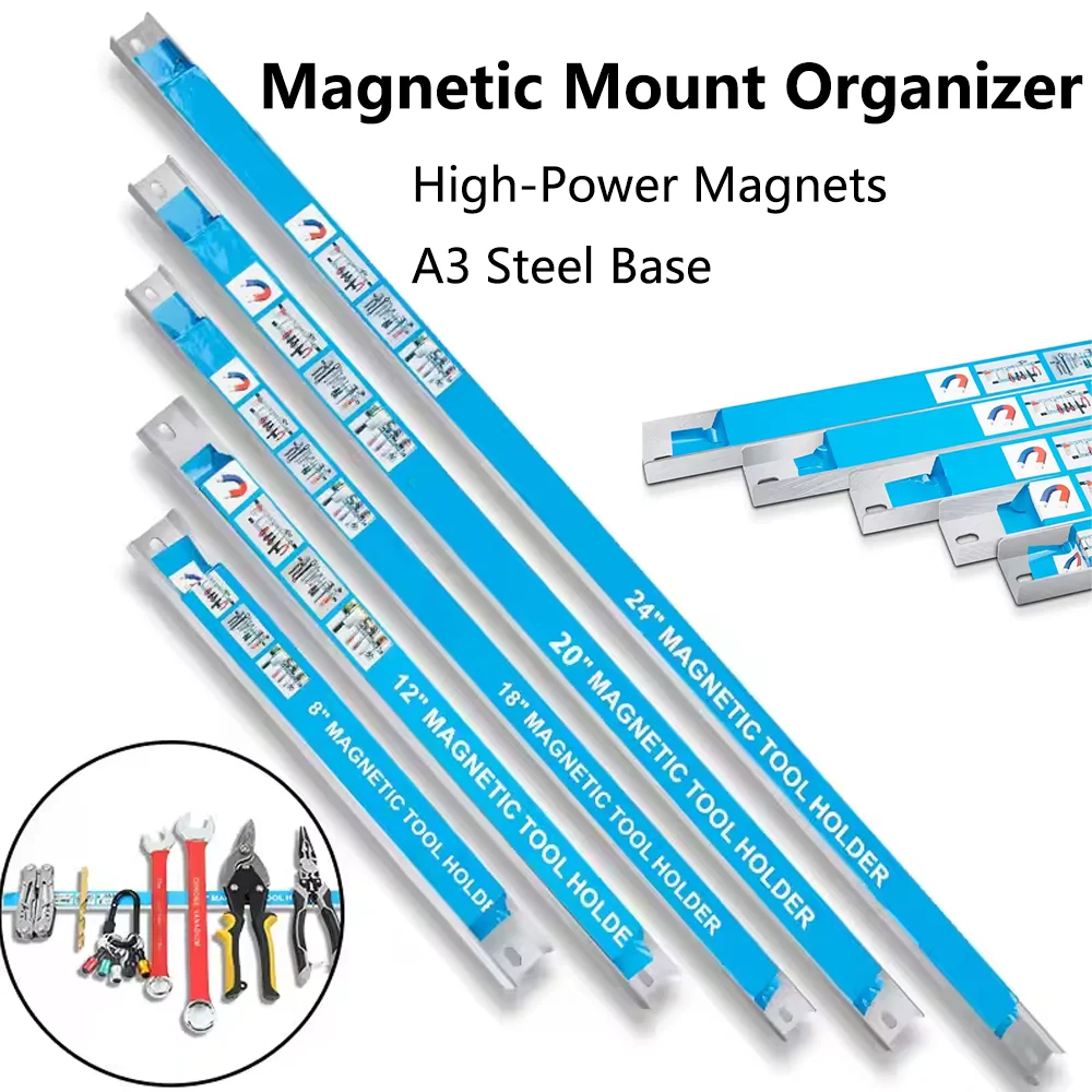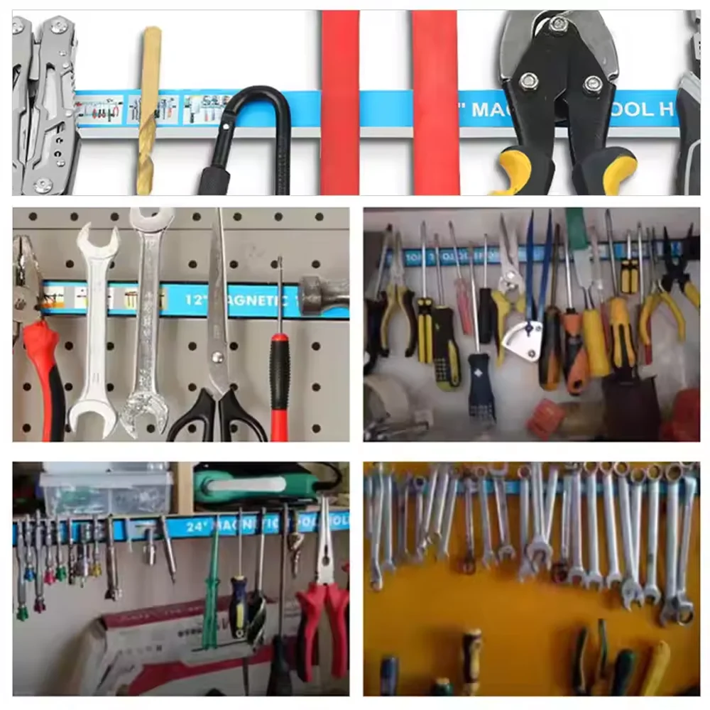 This magnetic tool rack is an excellent storage solution for organizing tools and kitchenware, making your workspace more efficient and tidy.