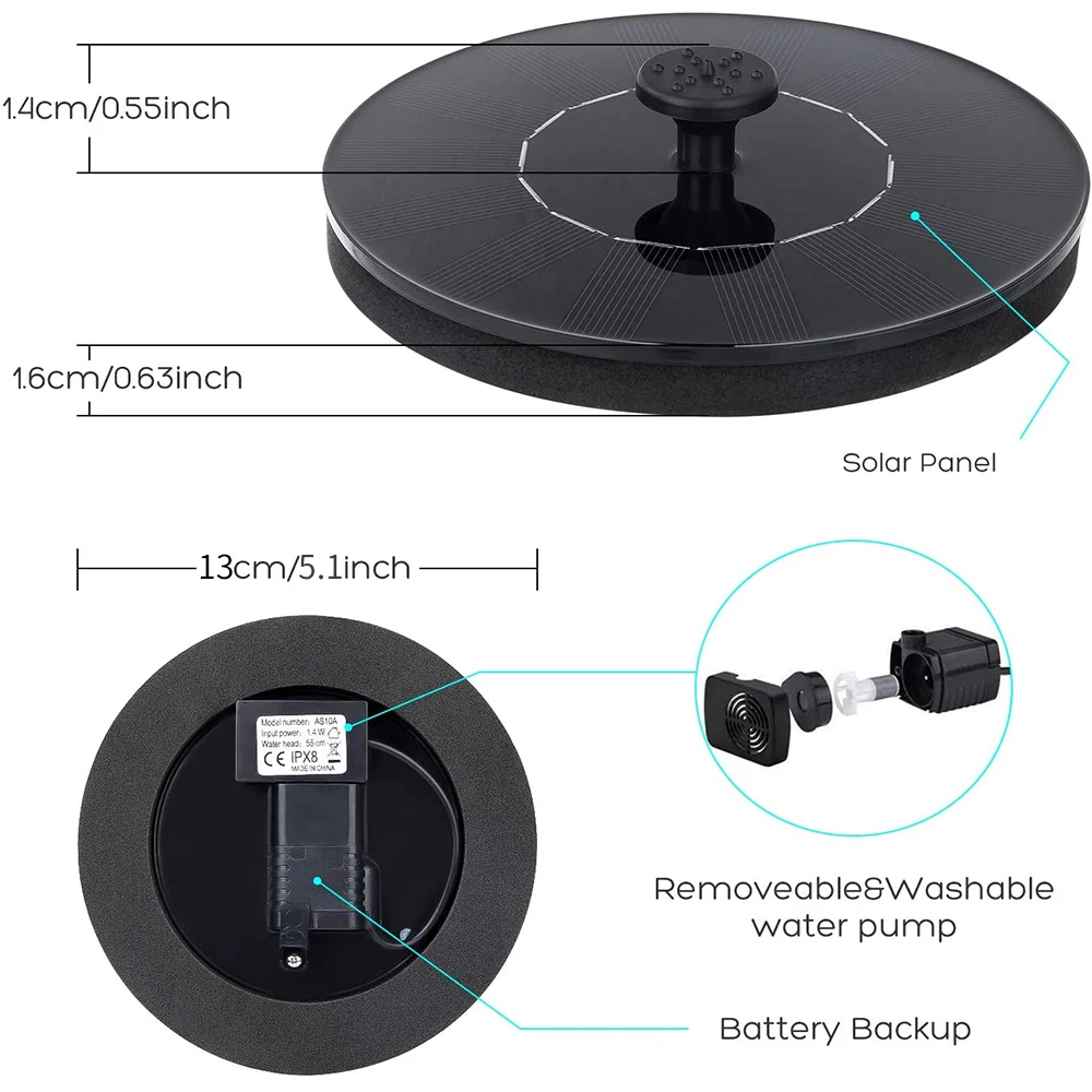 This mini solar water fountain is designed to enhance your outdoor space, providing a beautiful water feature for your garden, pond, or bird bath. It operates on solar power, making it an eco-friendly choice for adding charm to your environment.